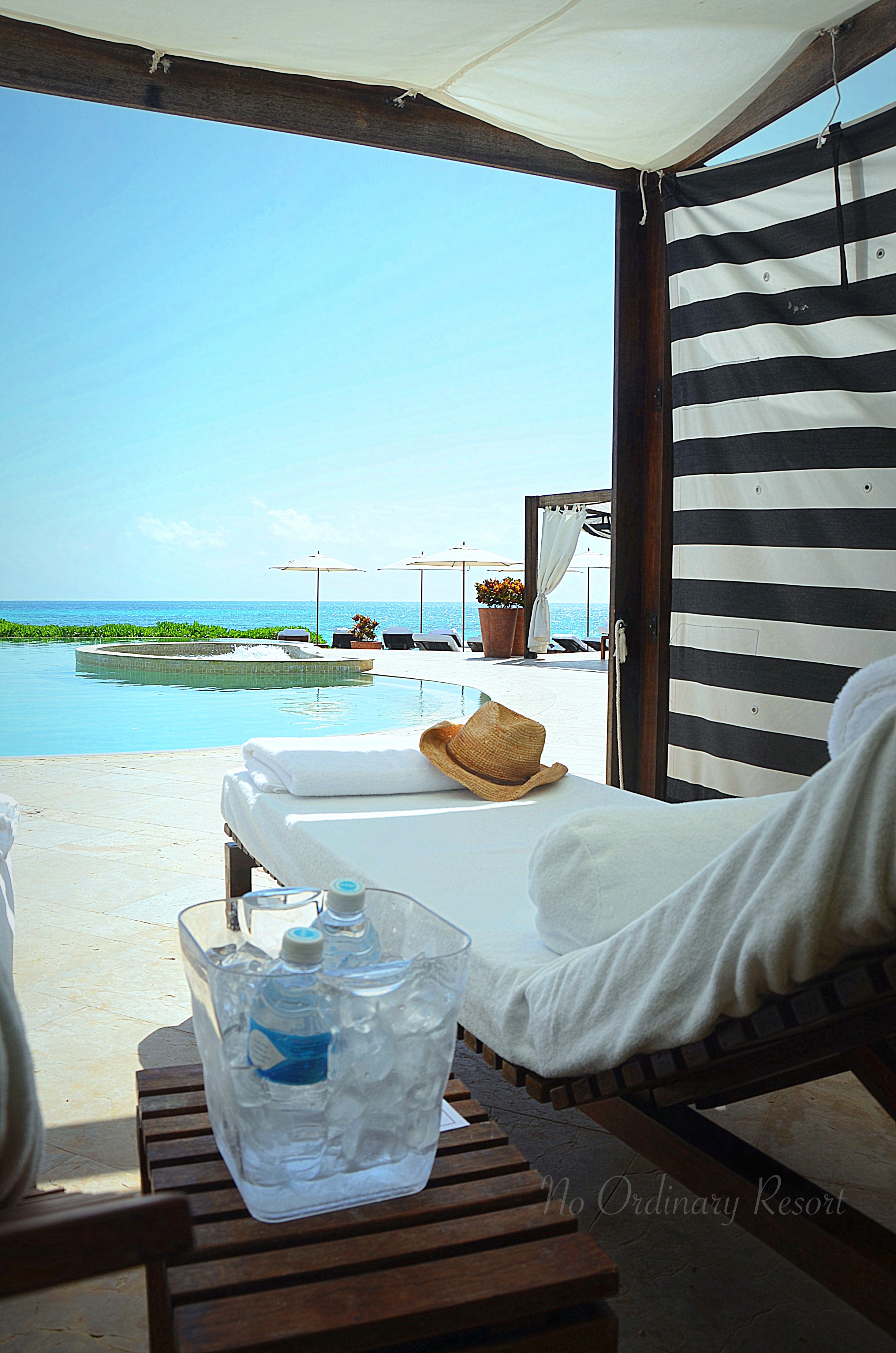 Pool Amenties: Pool time is always a priority for me on my trips. So for that reason, I absolutely love pool amenities. Not just the water buckets, Evian spritzers, or occasional popsicles ~ although nothing wrong with any of those…but I’m talking about complimentary cabanas, having my sunglasses cleaned, my neck massaged, and yes, even a Margarita bar rolled over my way. To me, there is nothing more luxuriously self-indulgent than pampering pool amenities.